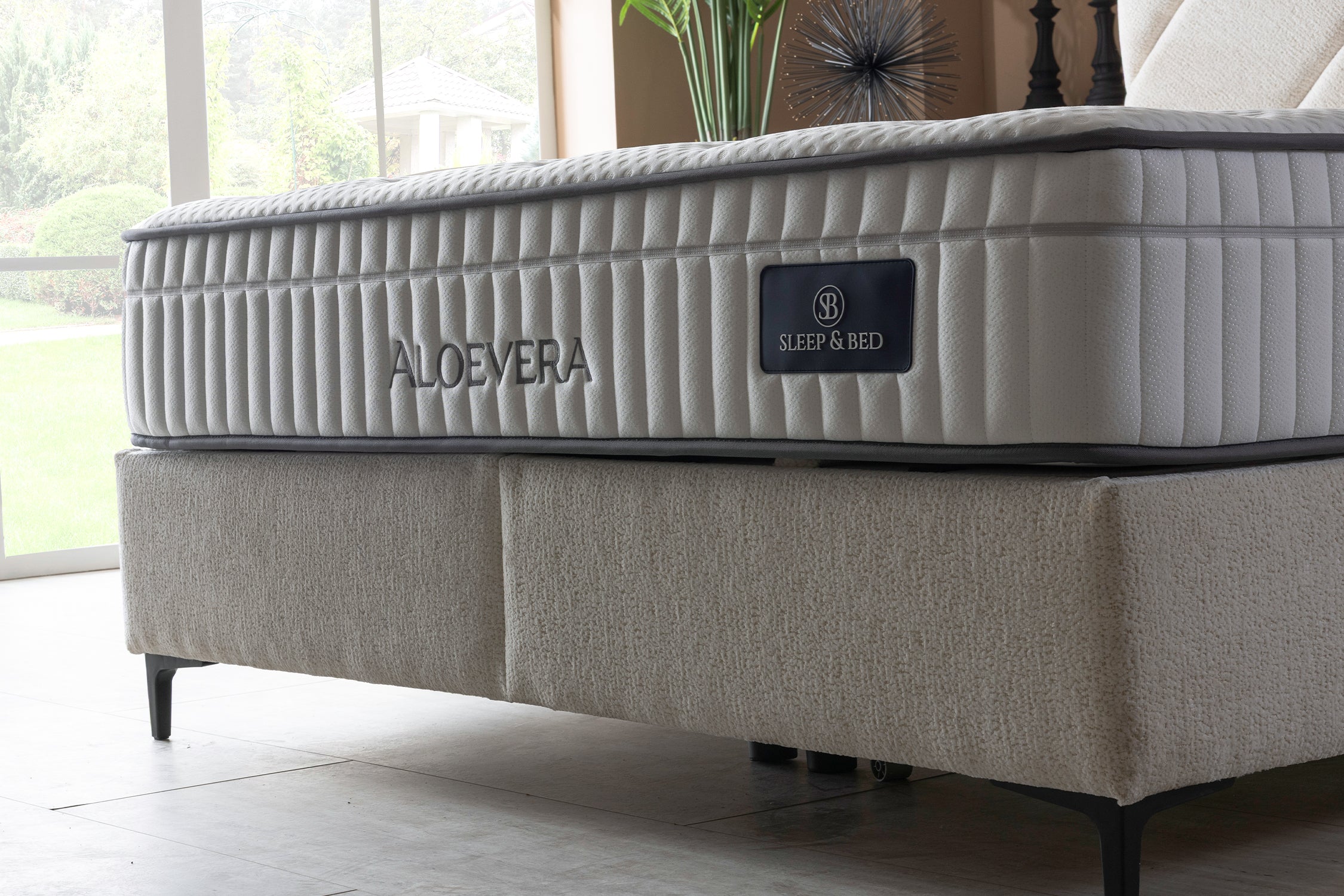 The Aloevera Visco mattress features a breathable, aloe vera-infused fabric that provides a skin-friendly, moisture-absorbing, and refreshing sleep surface. Its interior is enhanced with visco foam technology, which adapts to body contours and helps reduce pressure points for deeper comfort.