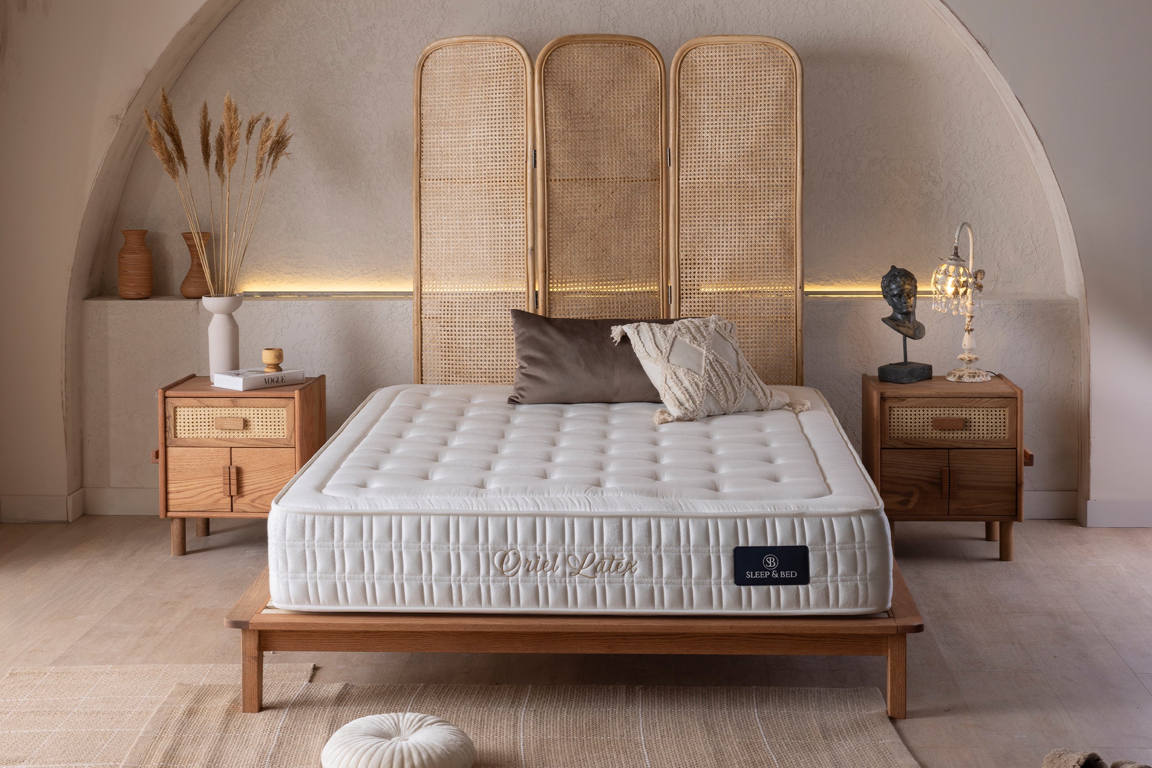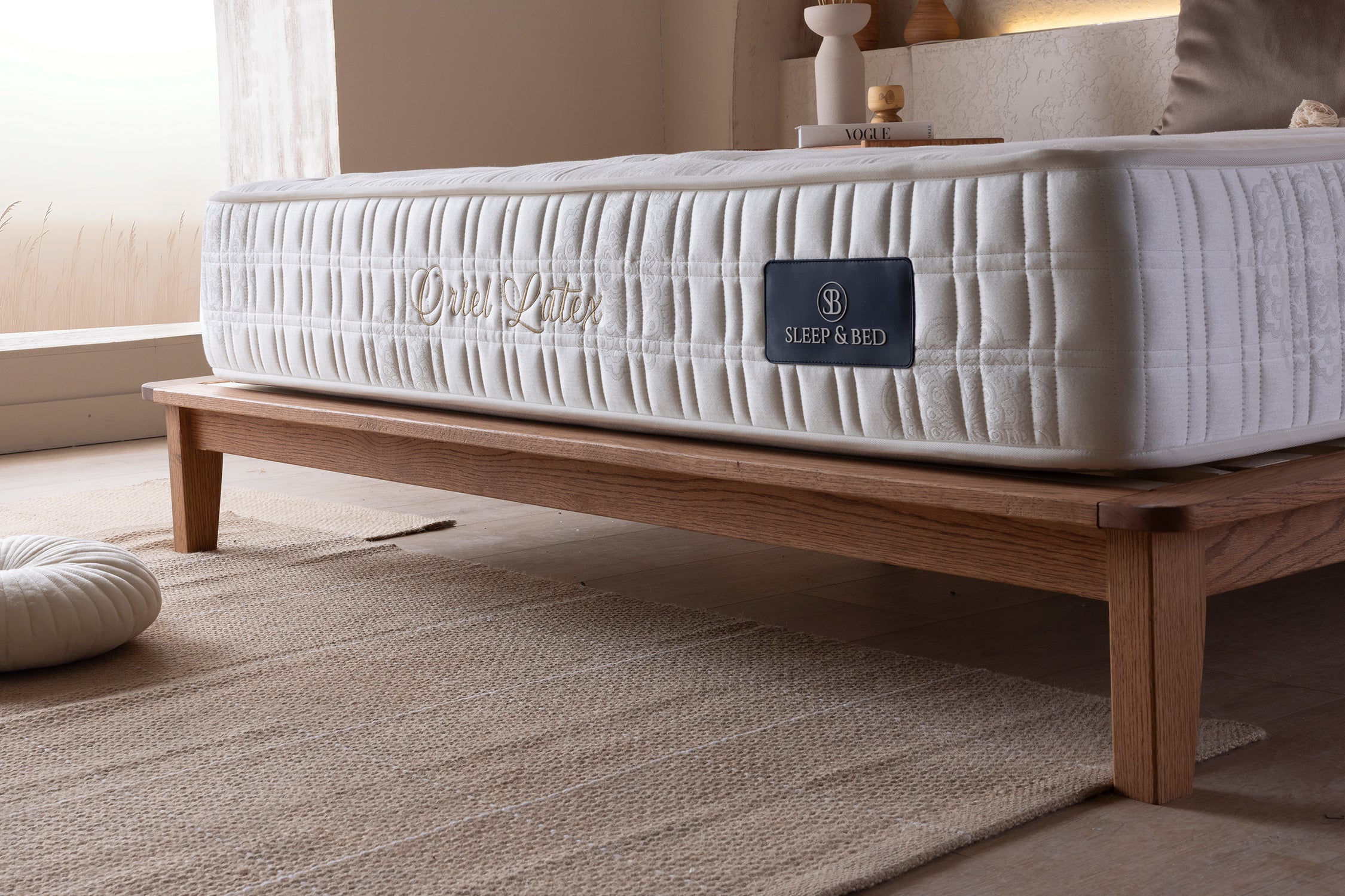 The Oriel Latex mattress stands out with its natural latex layer, which offers flexible support and adaptive comfort. Its breathable viscon fabric provides a cooling sensation during sleep, while the orthopedic structure promotes a healthy sleep environment.