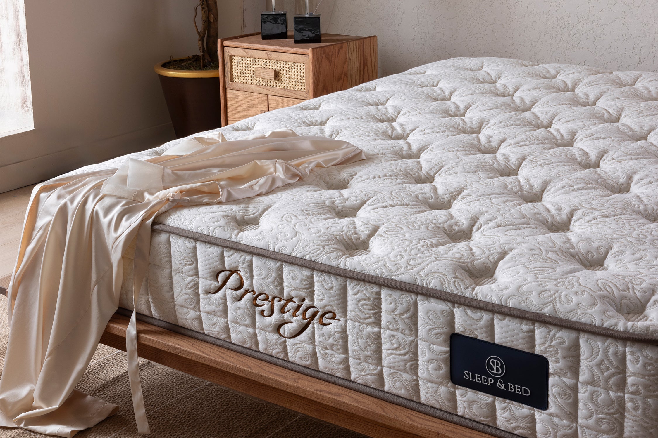 The Prestige mattress combines comfort and breathability with its ergonomic inner structure that supports the body’s natural curves and its soft-touch viscon fabric. The advanced knitted fabric technology ensures a skin-friendly and refreshing sleep environment.